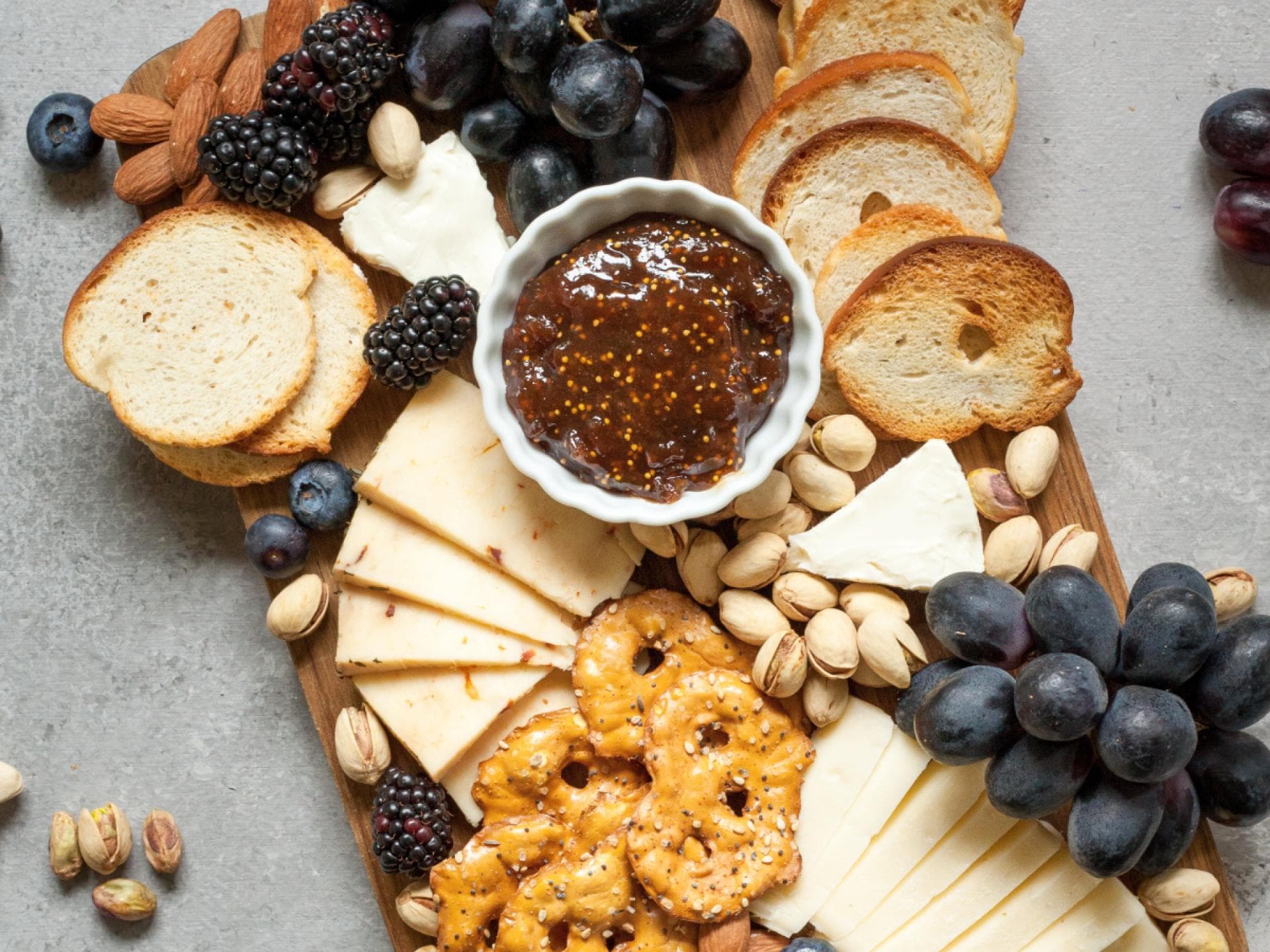 Damit eine Käseplatte zum Highlight auf dem Esstisch wird, kommt es nicht aufs Anrichten, sondern auch auf die Zutaten an. Einige sind mehr, andere weniger geeignet. In dieser Liste haben wir alle Käseplatten-Zutaten übersichtlich für Sie zusammengefasst, die sich besonders gut für das Charcuterie Board eignen: