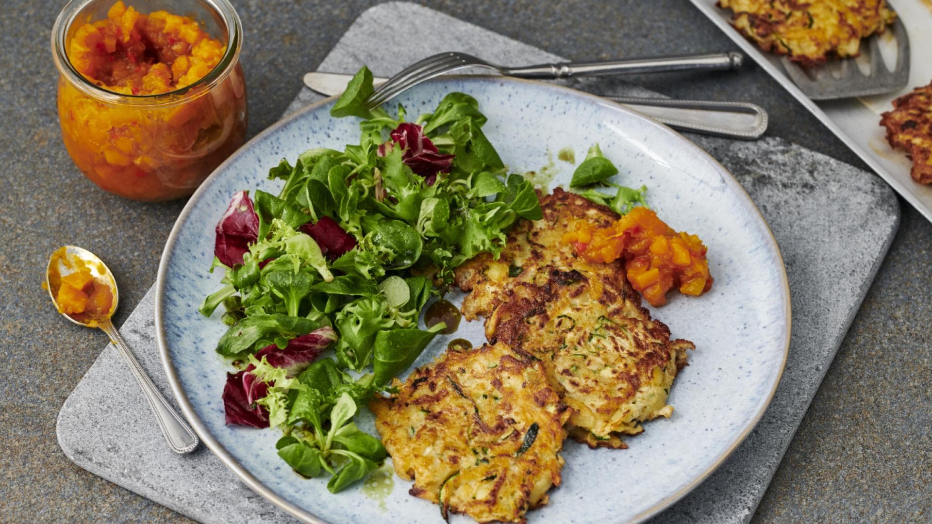 Rezept für Zucchini-Rösti mit Kürbischutney
