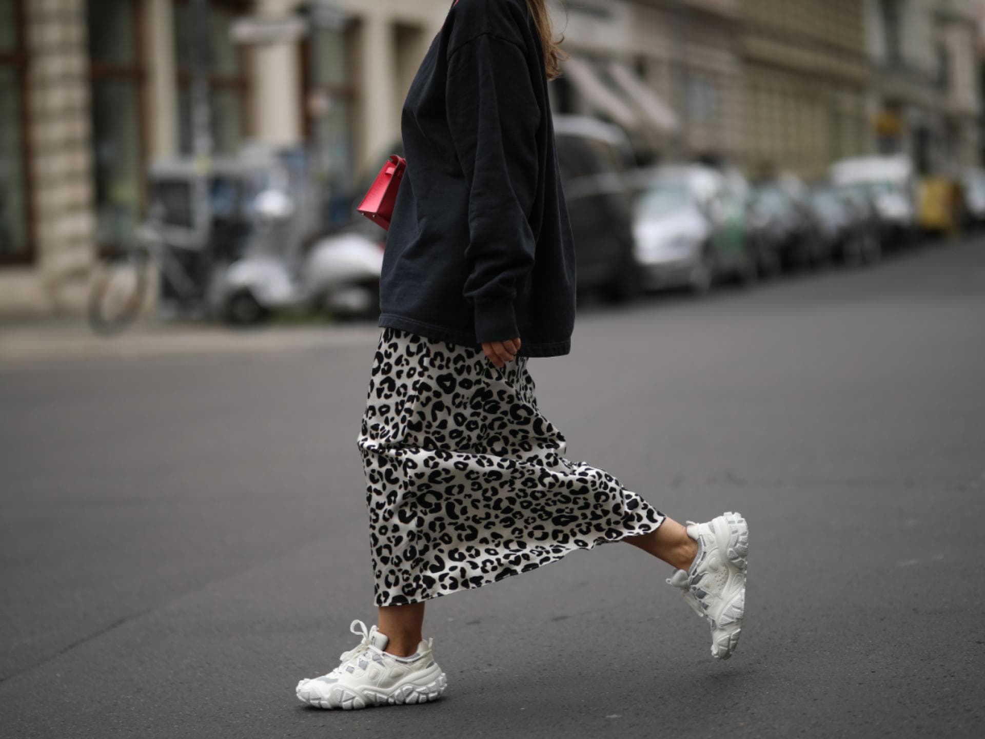 Sie stehen nicht auf den Chic-Look? Dann haben wir noch eine andere Möglichkeit für Sie: Kombinieren Sie das Animal-Print-Piece mit lässigen Hipster-Teilen. Weiße chunky Sneakers, eine Oversize-Jeansjacke und schon hat der Leo-Rock nichts verruchtes mehr an sich – und Ihr Look ist gleich doppelt angesagt.
