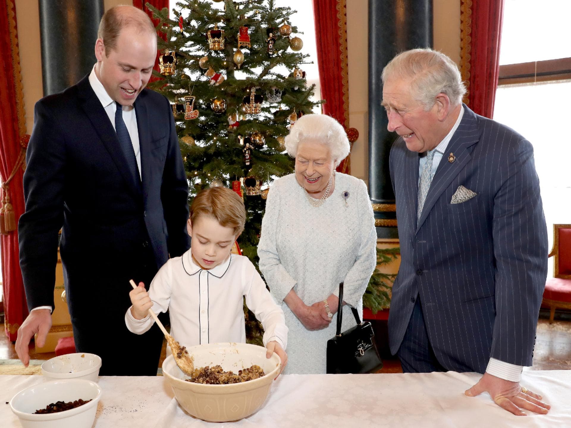 Eine schöne Weihnachtstradition: 4 Generationen der royalen Königsfamilie bereiten gemeinsam den typischen „Christmas Pudding” zu, der dann an UK-Soldaten im Einsatz über die Weihnachtstage verteilt wird.