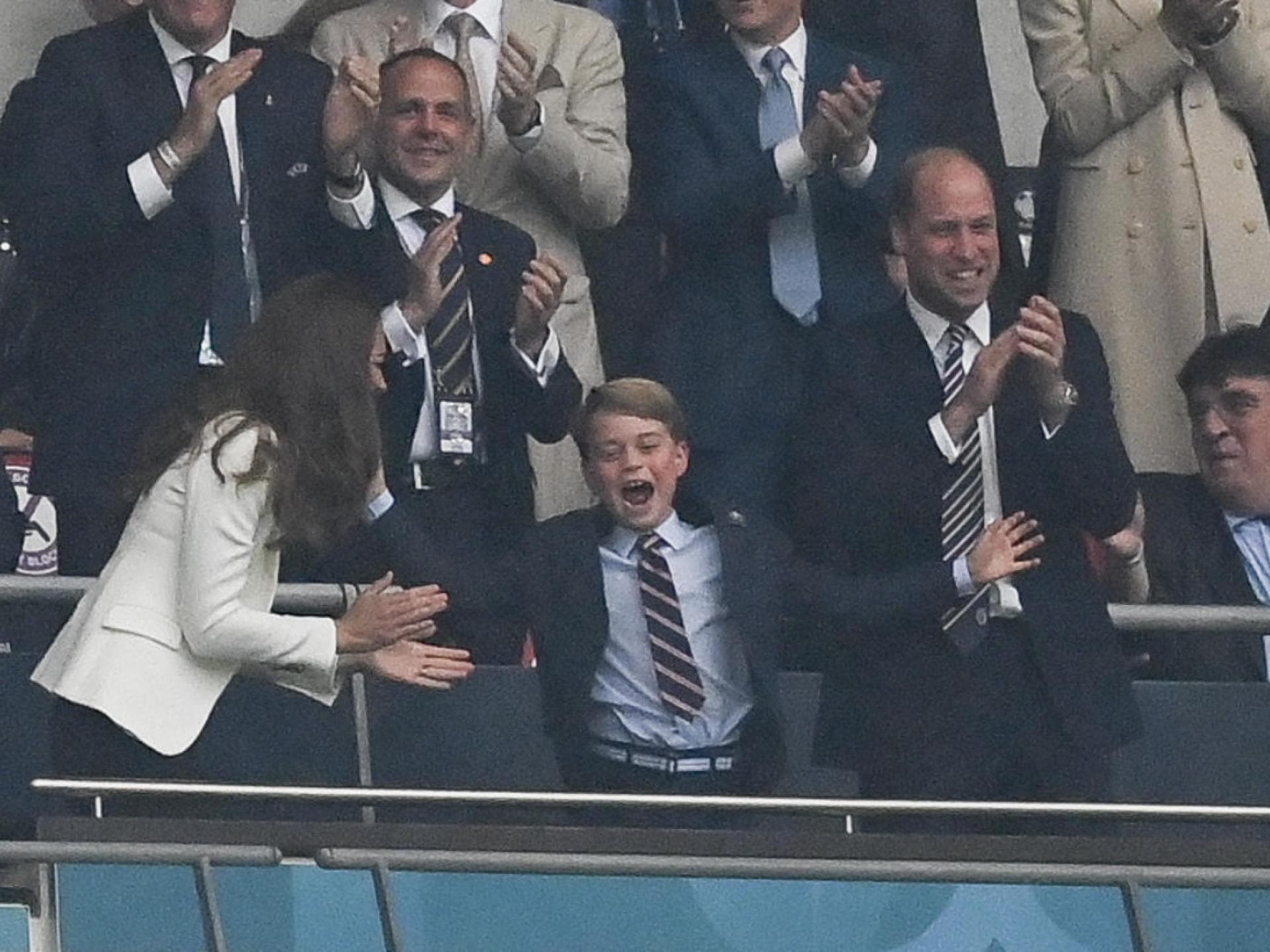 Auch klein George ist ein Fußballfreund: Beim EM-Spiel in Großbritannien freut er sich für die englische Mannschaft.